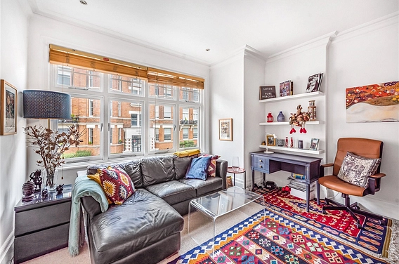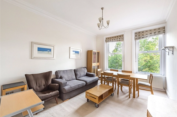 An excellent 1-bedroom apartment set on the raised ground floor of a detached house within a prime South Hampstead Conservation Area turning.
