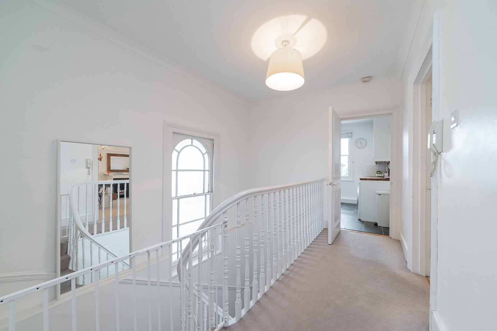 Stairs lead from the first-floor entrance to a bright open landing area with a particularly large, ornate window that floods the area with natural light, a theme that is found throughout this wonderful home. Excellent living space is found in the large 18’4 x 14’10 reception room and adjacent 10’ x 9’6 kitchen. Both bedrooms are set to the rear of the property overlooking surrounding gardens and are generously appointed, with the principal bedroom being particularly spacious, measuring 14’11 x 12’9. A family bathroom and separate W.C. complete the accommodation found in this fine home.