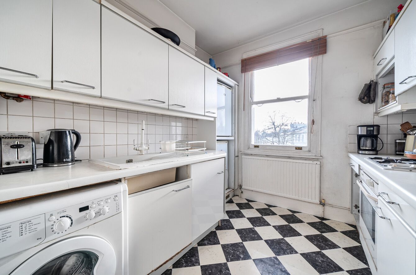 Reception and Kitchen Looking down Priory Road with beautiful Stucco Fronted Houses