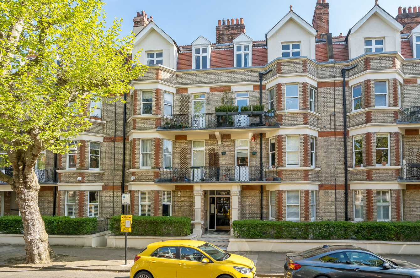 A particularly spacious 3-bedroom apartment on the second floor of this highly regarded mansion block that enjoys the use of large and well-maintained communal gardens.