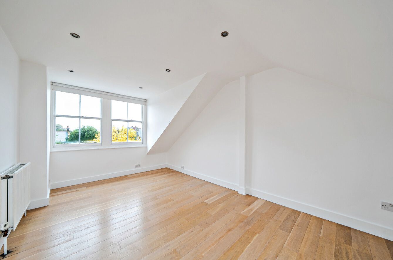 The large principal bedroom is set across the top floor and benefits from an ensuite shower room and built-in storage. The second bedroom, third bedroom and a family bathroom complete the accommodation.