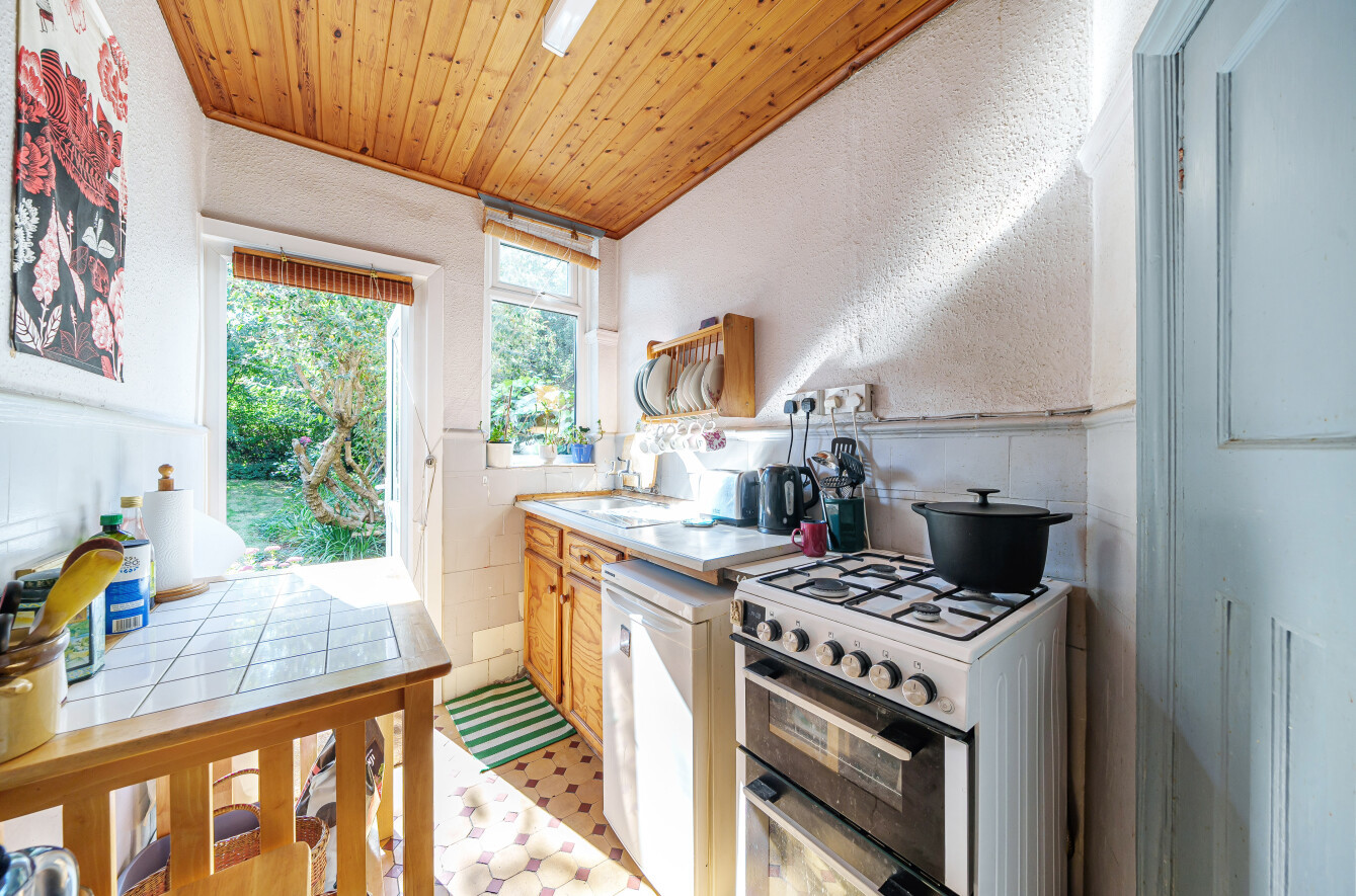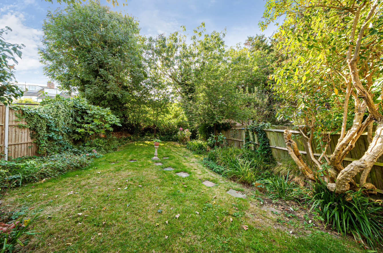 The large 75’ south westerly facing rear garden is a lovely peaceful backdrop and with mature trees and shrubs it has a real sense of privacy. The rare convenience of having an integrated garage and additional off-street parking add to the appeal of this home which is full of original features and abundant potential.