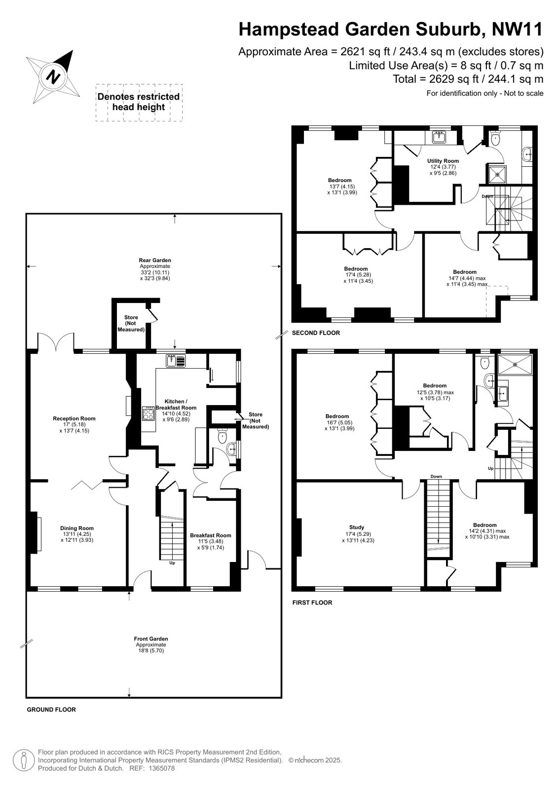 A substantial family home measuring approximately 2621 sq. ft (243 sq. m) with accommodation arranged over 3 floors. This stunning home provides expansive living space on the ground floor, featuring a spacious entrance hall and two well-appointed reception rooms, a kitchen with an adjacent breakfast room, and a guest WC. The upper floors are home to 6 double bedrooms, a large study, a utility room, 2 bathrooms and a separate WC. This wonderful home has retained many original features, including beautiful fireplaces and herringbone solid wood floors. Another stunning feature of the house is that each room affords a striking green outlook, a characteristic unique to homes within the Garden Suburb and a feature that belies the central London location. Hampstead Garden Suburb is one of North London’s most prestigious and picturesque residential areas, renowned for its leafy streets, architectural heritage, and village-like charm. Designed in the early 20th century by visionary urban planner Dame Henrietta Barnett, the Suburb was conceived as a model community blending beautiful homes, generous green spaces, and a strong sense of community. The area benefits from Golders Green Underground Station (Northern Line) and frequent bus routes, providing access to Central London and the West End. For those who drive, the A1 and North Circular are moments away, making commuting and travel exceptionally convenient. Tenure: Freehold Council Tax: London Borough of Barnet - Band H Energy Efficiency: Current D (62) Potential C (71)