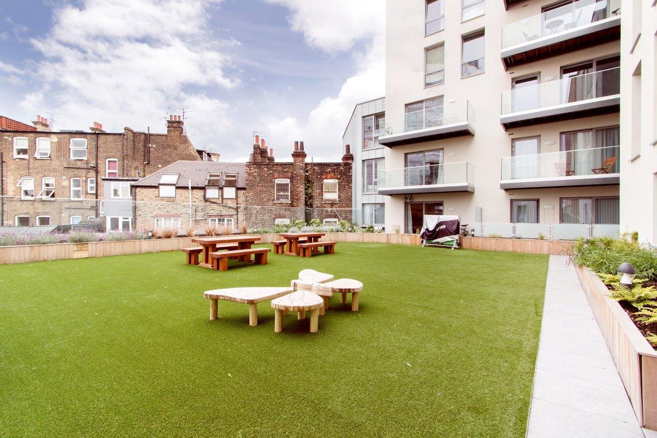 Bright and modern 1 bedroom flat within the heart of Dalston (1 minute walk to the tube - Dalston Kingsland and Junction) situated on the top floor (6th floor, 2 large lifts). Flat also has access to a large grassed roof terrace with benches and tables.