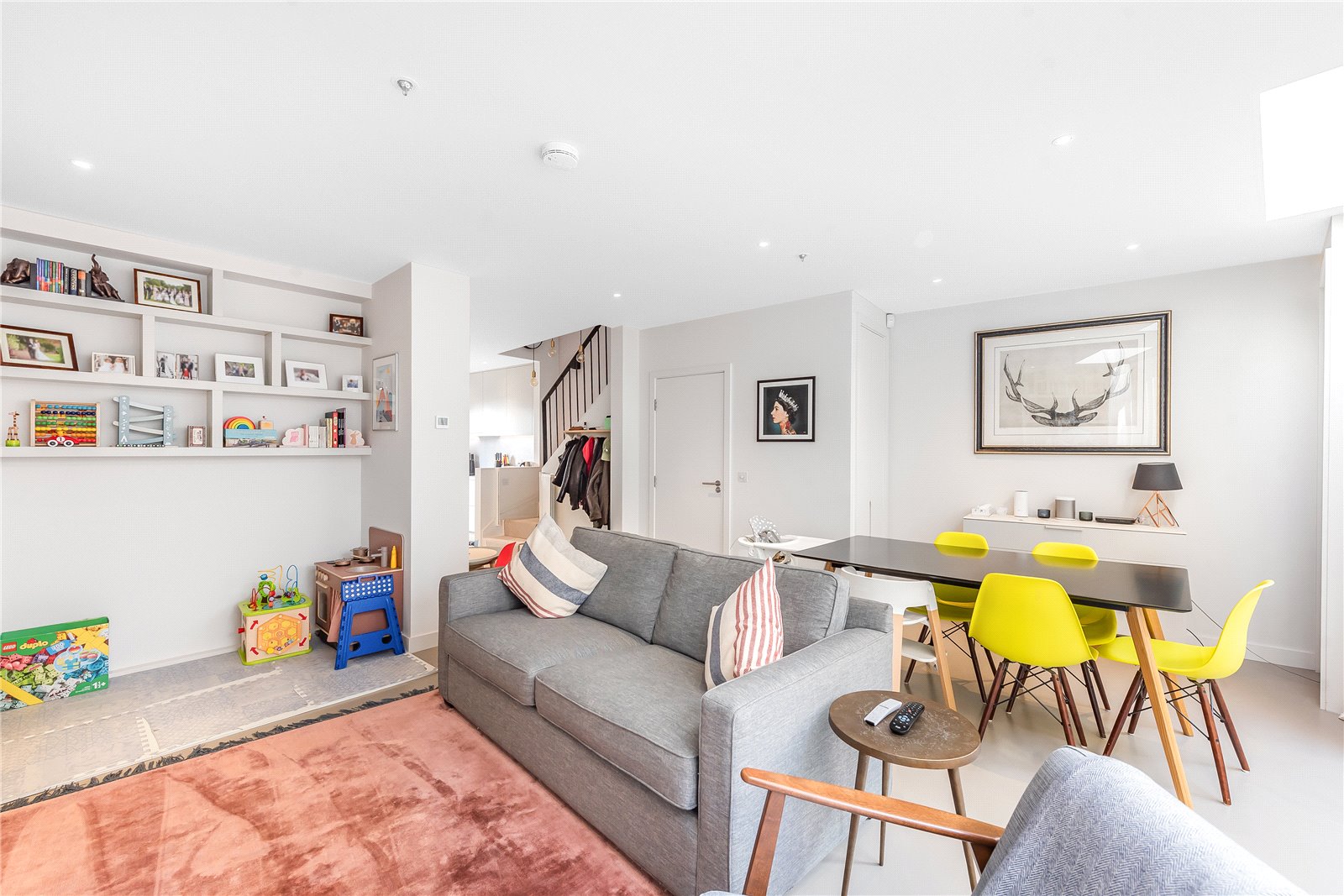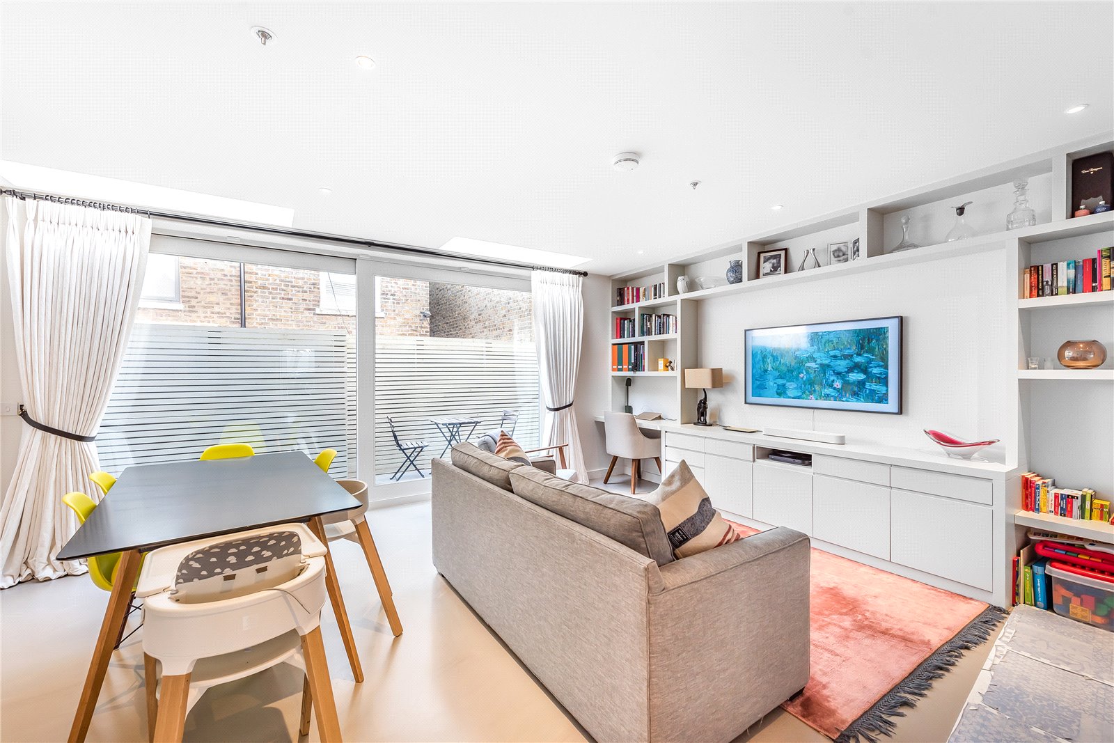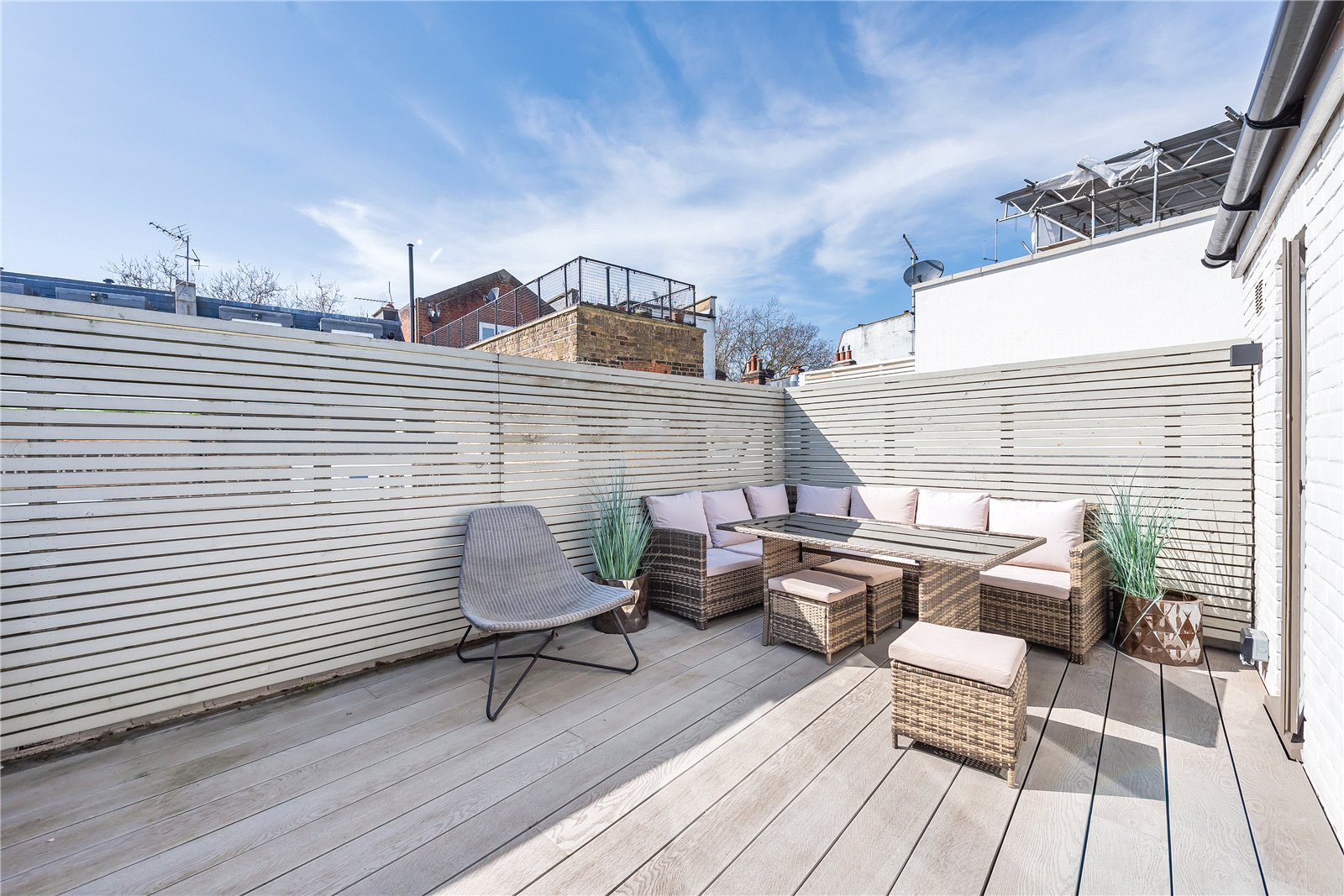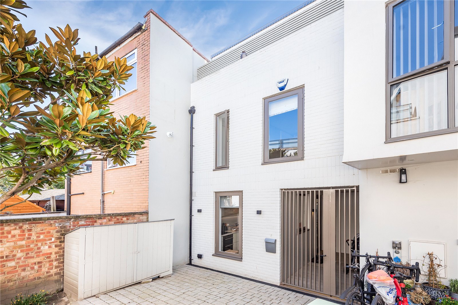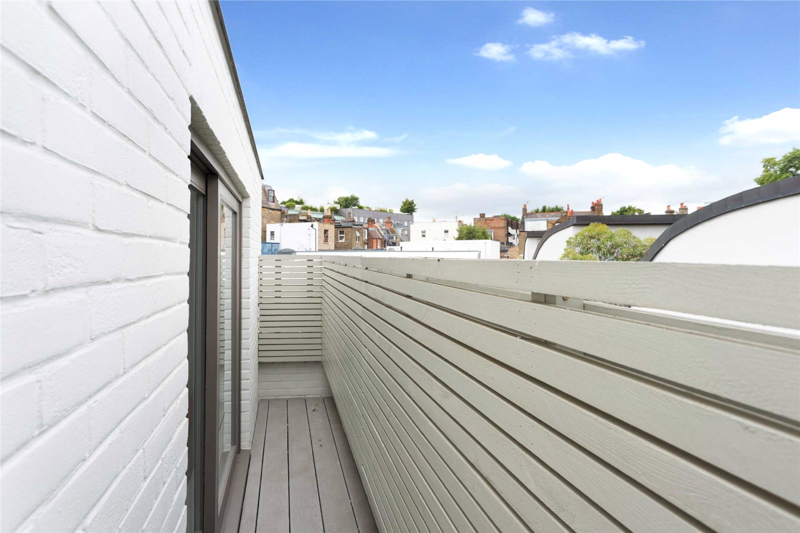 Open plan entertaining space with a poured resin floor and underfloor heating opens to a small rear courtyard garden on the ground floor. A large double, another double bedroom and a family bathroom occupy the first floor. On the top floor is a further double bedroom (also ideal for a home office) with en-suite shower and an amazing sun terrace. The property features beautiful bespoke joinery and is heated via an economical and state of the art heat-exchange unit.