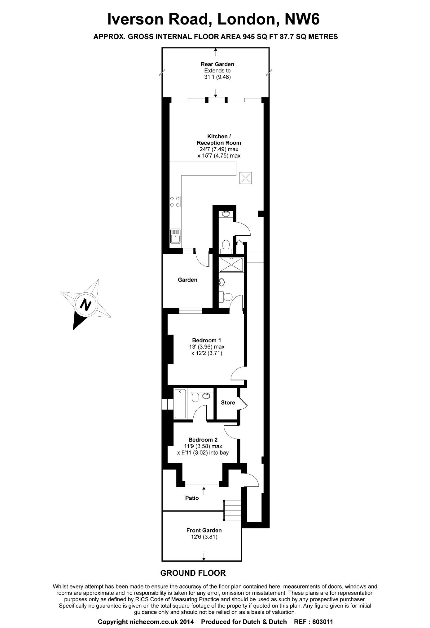 A stunning two double bedroom garden flat (945 sq ft/88 sq m) situated within a smart period conversion, enviably located in Kilburn. Available part furnished from the 28th February. Council Tax Band D.